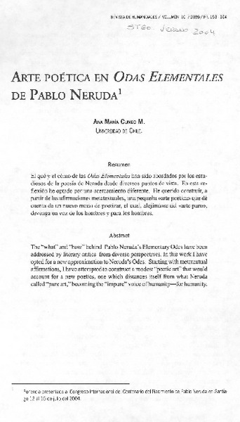 Arte poética en Odas elementales de Pablo Neruda [artículo] An María Cuneo M.
