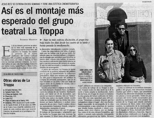 Así es el montaje más esperado del grupo teatral La Troppa [artículo] Rodrigo Miranda.