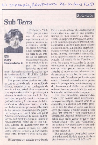 Sub Terra, entre la luz y el infierno [artículo] JPJ.