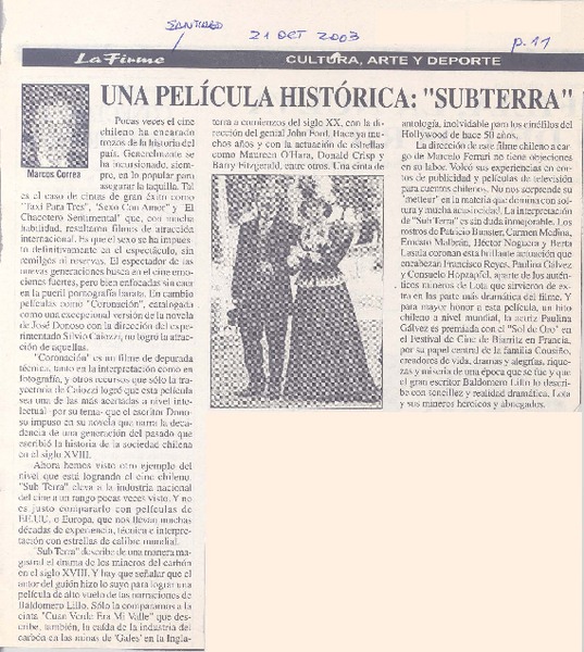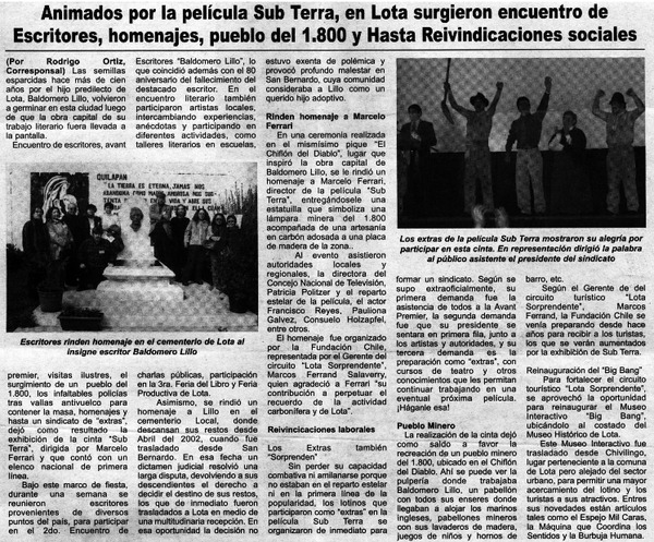 Animados por la película Sub Terra, en Lota surgieron encuentro de escritores, homenajes, pueblo del 1.800 y hasta reivindicaciones sociales [artículo] Rodrigo Ortiz.