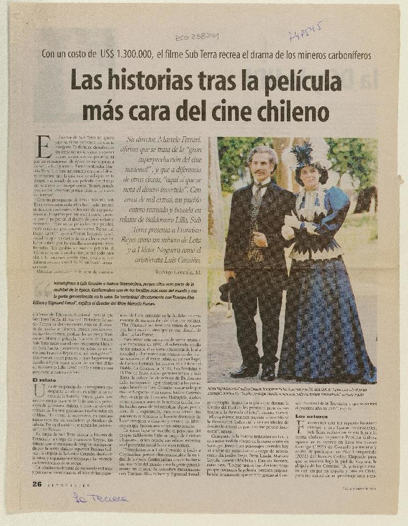 Las historias tras la película más cara del cine chileno [artículo] Rodrigo González M.