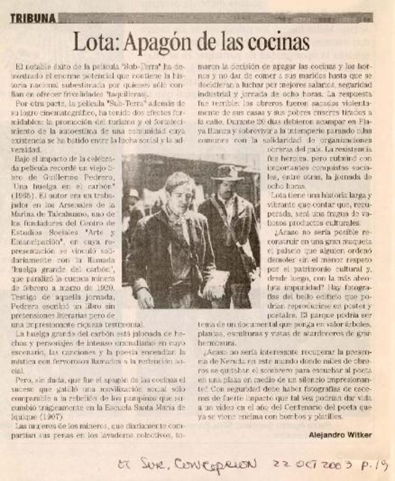 Lota: Apagón de las cocinas [artículo] Alejandro Witker.