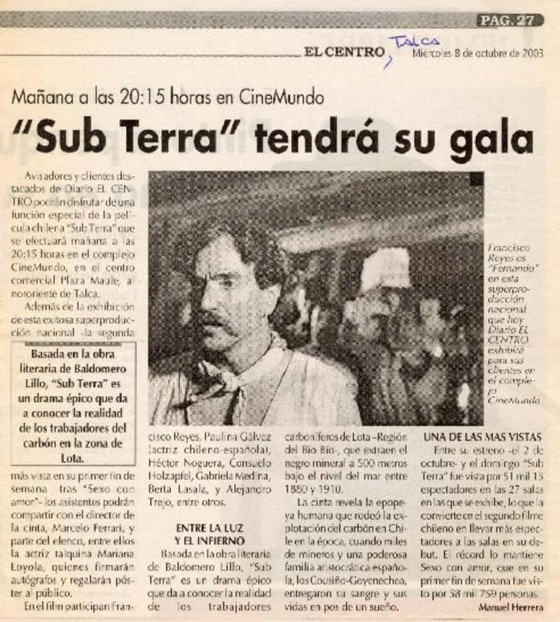 Sub Terra" tendrá su gala [artículo] Manuel Herrera.