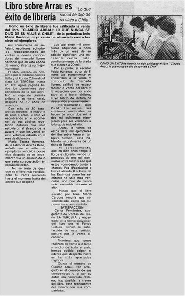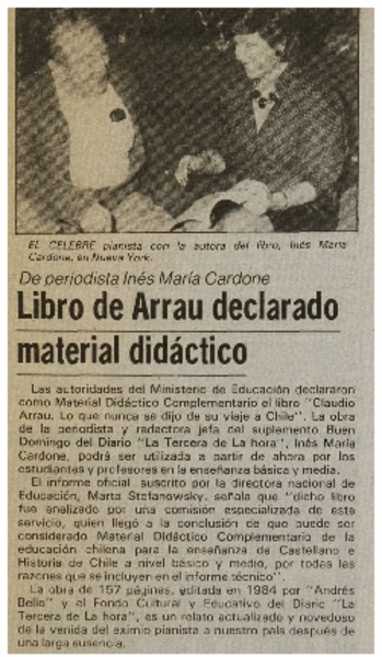 Lanzan libro sobre visita de Claudio Arrau [artículo].