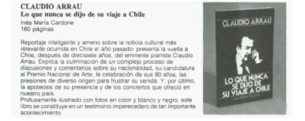 Cardone, Inés María - Claudio Arrau; lo que nunca se dijo de su viaje a Chile