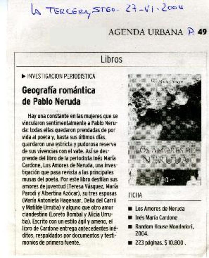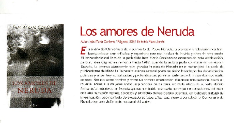 Autores chilenos - Neruda, Pablo - Cardone, Inés María - Amores de Neruda