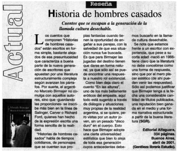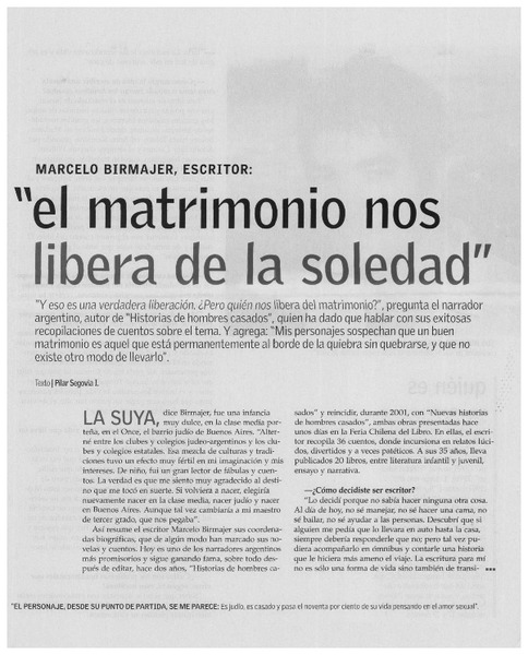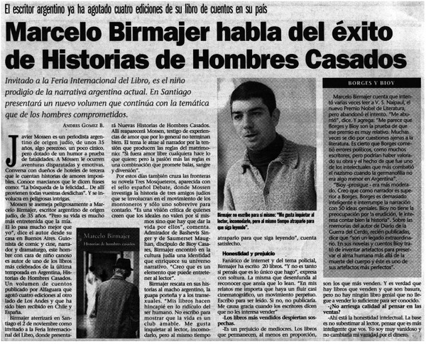 Marcelo Birmajer habla del éxito de Historias de hombres casados [artículo] Andrés Gómez B.