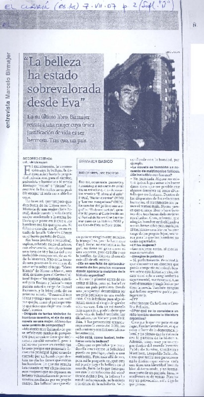 "La belleza ha estado sobrevalorada desde Eva" (entrevista) [artículo] Socorro Estrada.