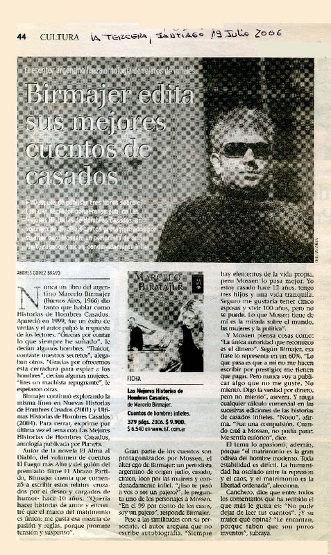Birmajer edita sus mejores cuentos de casados [artículo] Andrés Gómez Bravo.