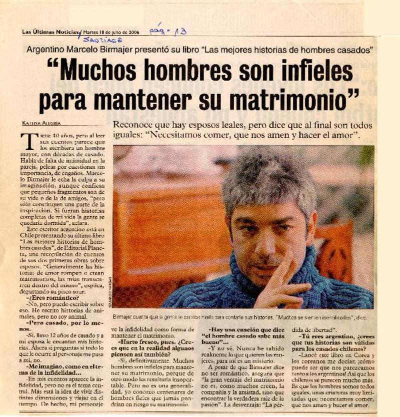 Entrevistas - Autores argentinos - Birmajer, Marcelo - Historias de hombres casados