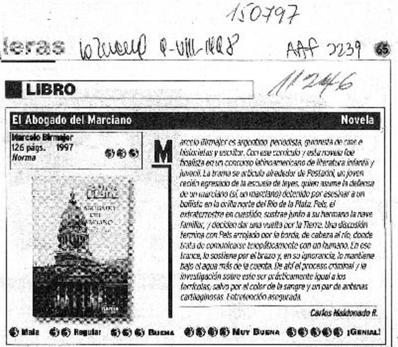 El abogado del marciano [artículo] Carlos Maldonado R.