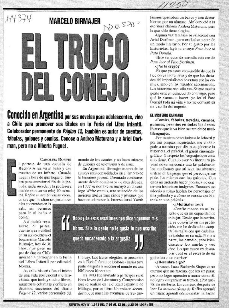 El libro adulto de Birmajer [artículo] Elizabeth Orellana.