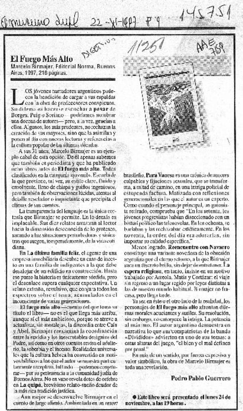 El fuego más alto [artículo] Pedro Pablo Guerrero.