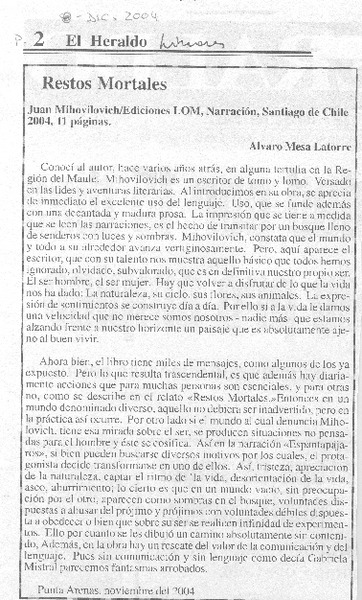 Restos mortales [artículo] Álvaro Mesa Latorre.