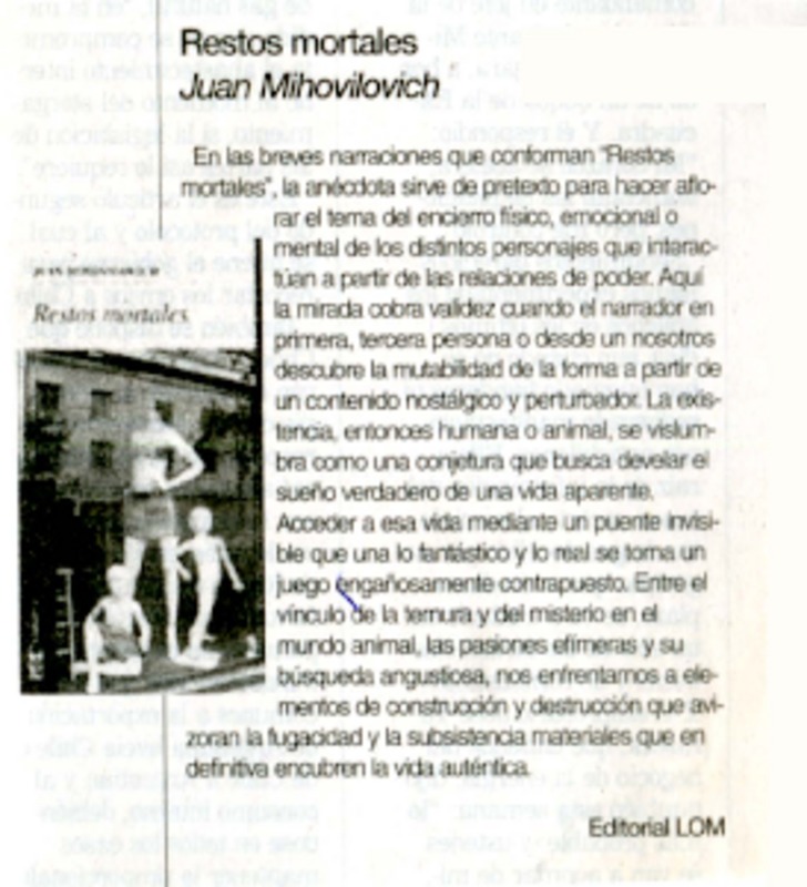 Autores chilenos - Mihovilovic, Juan - Restos mortales