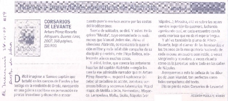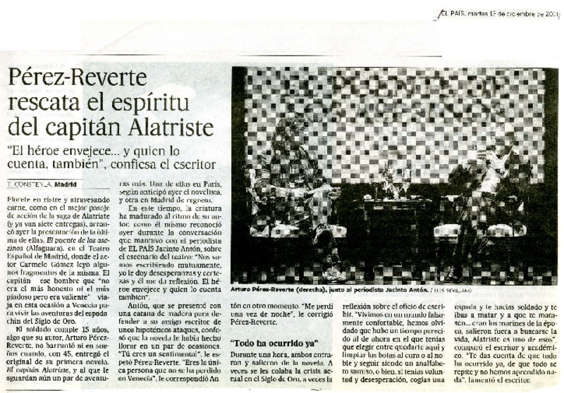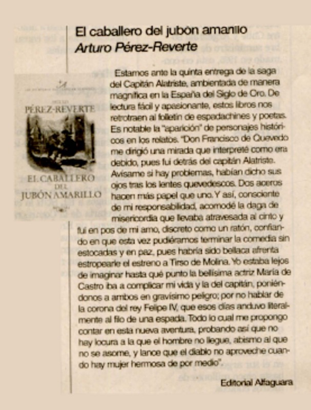 Pérez-Reverte rescata el espíritu del capitán Alatriste [artículo] T. Constenla.