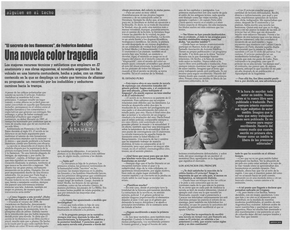 Entrevistas - Autores argentinos - Andahazi, Federico - Secreto de los flamencos