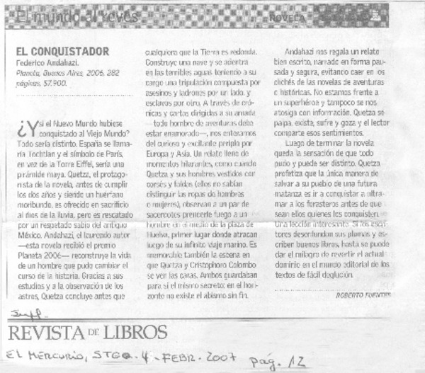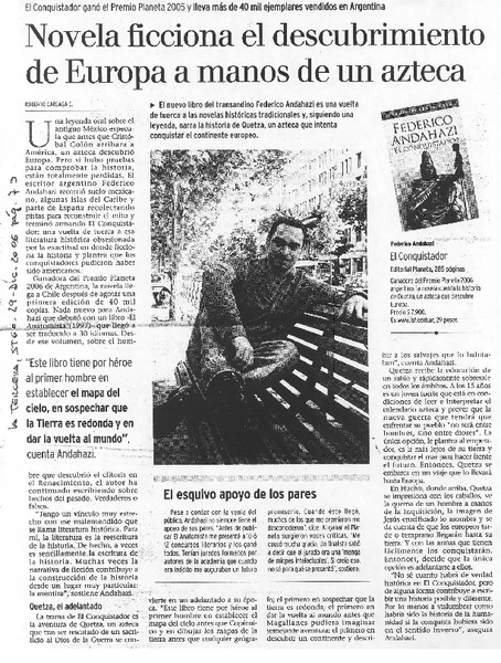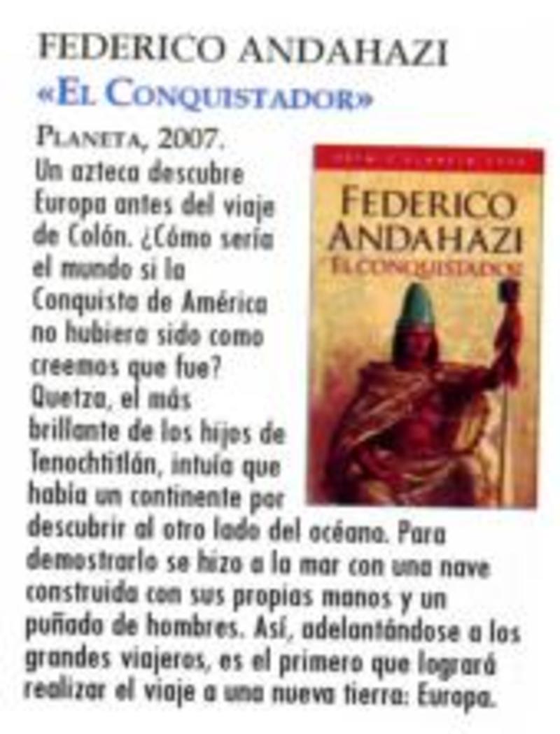 Novela ficciona el descubrimiento de Europa a manos de un azteca [artículo] Roberto Careaga C.