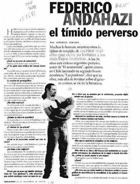 Federico Andahazi el tímido perverso [artículo] Verónica Vergara.