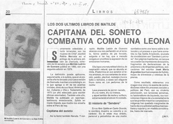 Capitana del soneto combativa como una leona [artículo] J.M.V.