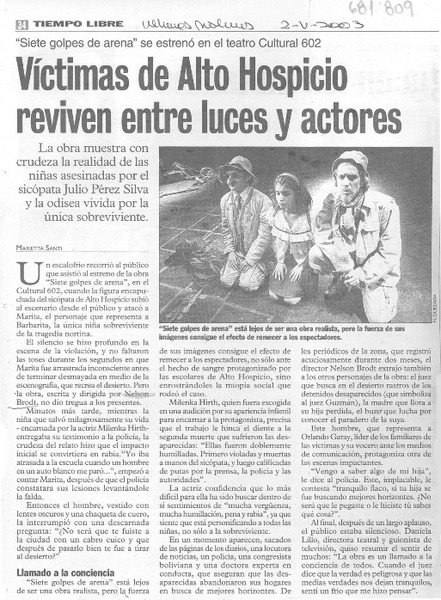 Estrenan montaje sobre los prejuicios que rodearon crímenes de Alto Hospicio [artículo] Javier Ibacache V.