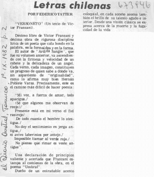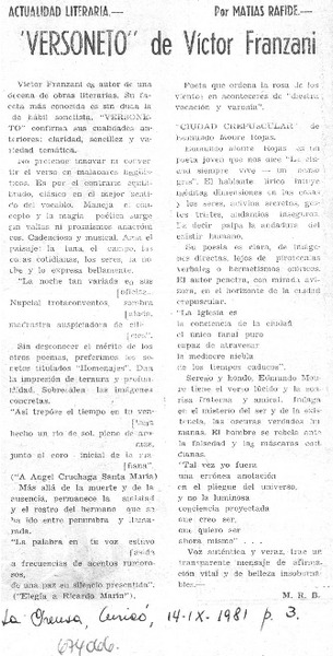 Versos netos de Víctor Franzani [artículo] Andrés Sabella.