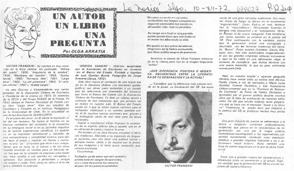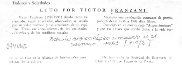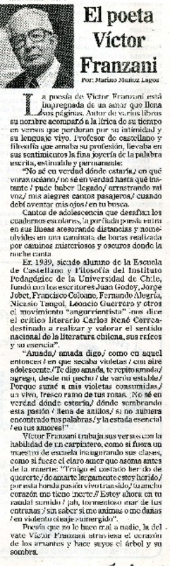 El poeta Víctor Franzani [artículo] Marino Muñoz Lagos.