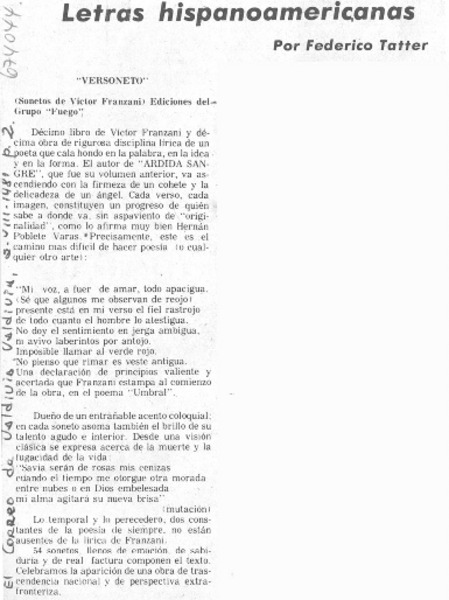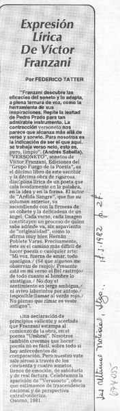 Expresión lírica de Víctor Franzani [artículo] Ferderico Tatter.