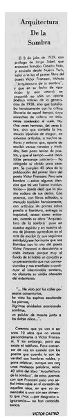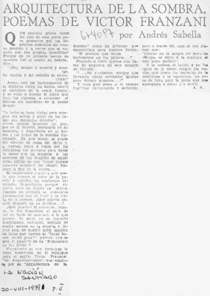 Arquitectura de la sombra, poemas de Víctor Franzani [artículo] Andrés Sabella.