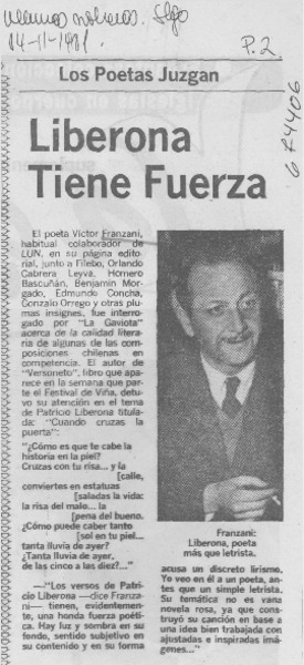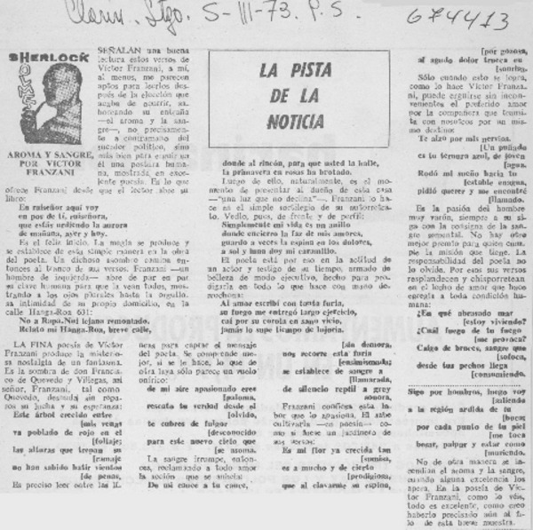 El poeta Víctor Franzani [artículo] Luis Merino Reyes.