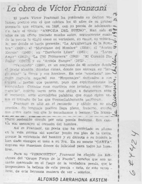 La obra de Víctor Franzani [artículo] Alfonso Larrahona Kästen.