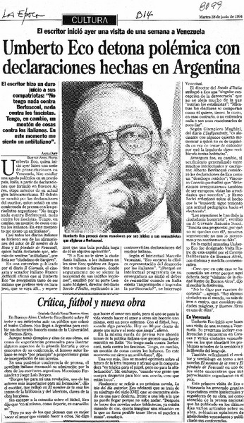 Umberto Eco detona polémica con declaraciones hechas en Argentina. [artículo]
