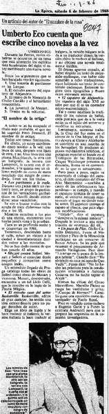 Umberto Eco cuenta que escribe cinco novelas a la vez [artículo] Umberto Eco.