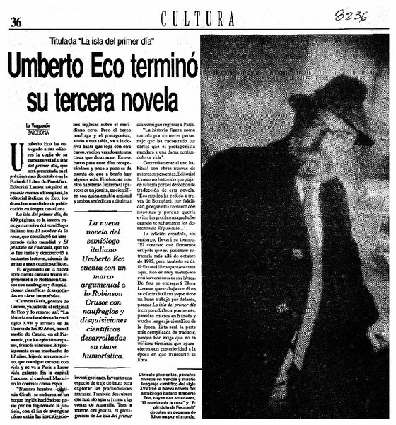 En octubre Umberto Eco revela su misteriosa novela [artículo] Elías Condal.