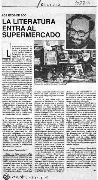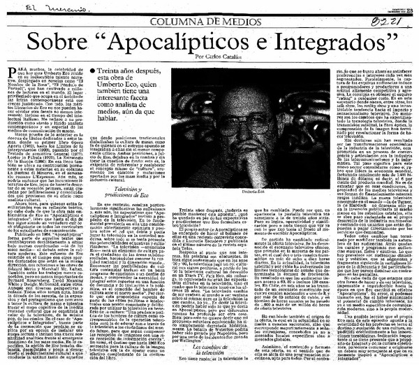 Sobre "Apocalípticos e integrados" [artículo] Carlos Catalán.