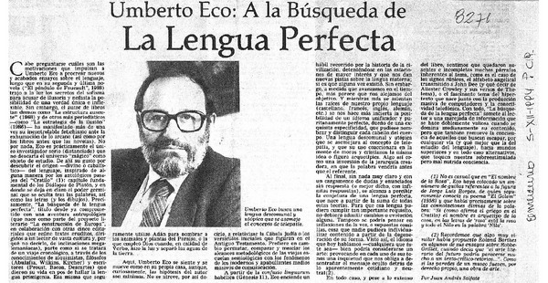 Umberto Eco, a la búsqueda de la lengua perfecta [artículo] Juan Andrés Salfate.