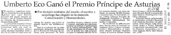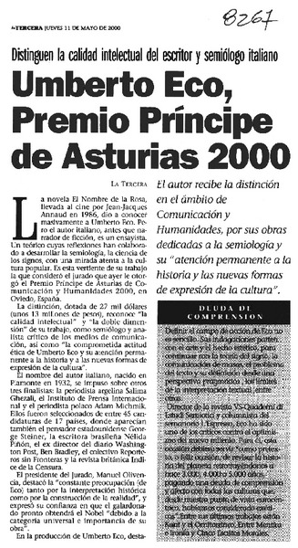 Umberto Eco, Premio Príncipe de Asturias 2000. [artículo]