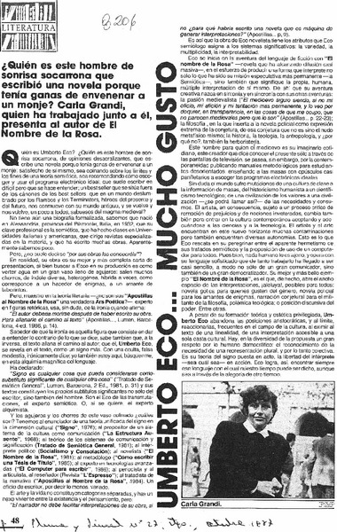 Umberto Eco -- mucho gusto [artículo] Carla Grandi.