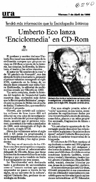 Umberto Eco lanza "Enciclomedia" en CD-Rom. [artículo]