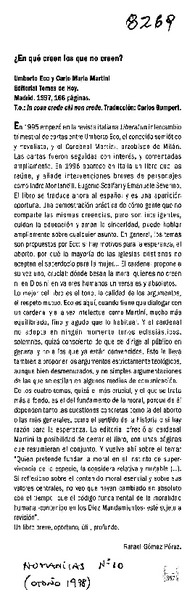 En qué creen los que no creen? [artículo] Rafael Gómez Pérez.