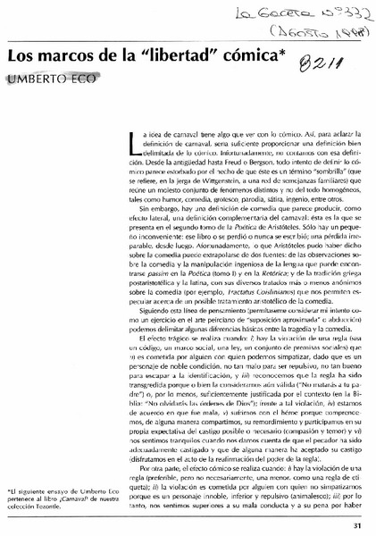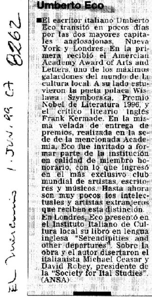 Umberto Eco despliega su agudeza y humor en un nuevo libro [artículo] Marilú Ortiz de Rozas