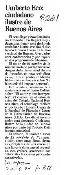 Umberto Eco, ciudadano ilustre de Buenos Aires. [artículo]
