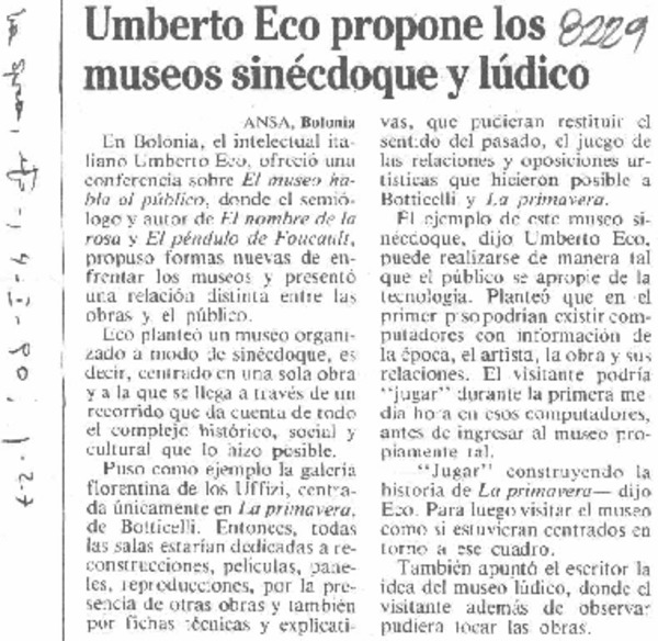 Umberto Eco propone los museos sinéctoque y lúdico. [artículo]