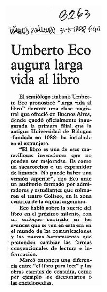 El Prestigioso semiólogo y escritor Umberto Eco en Buenos Aires. [artículo]