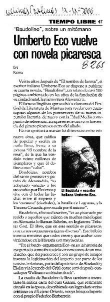 Umberto Eco vuelve con novela picaresca. [artículo]
