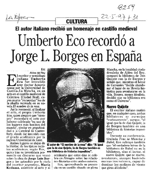 Umberto Eco recordó a Jorge L. Borges en España. [artículo]