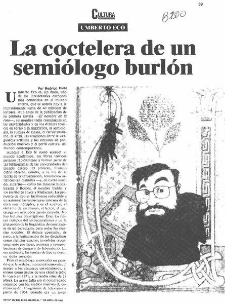 La coctelera de un semiólogo burlón [artículo] Rodrigo Pinto.
