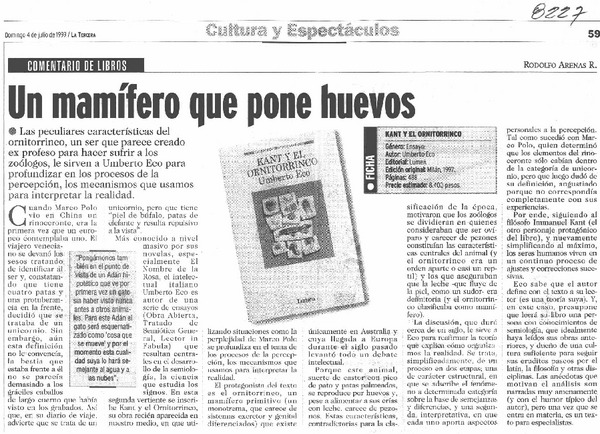 Un mamífero que pone huevos [artículo] Rodolfo Arenas R.