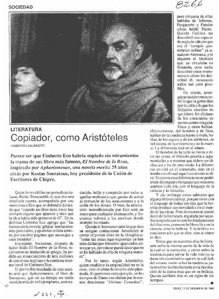 Copiador, como Aristóteles [artículo] Humberto Galimberti.