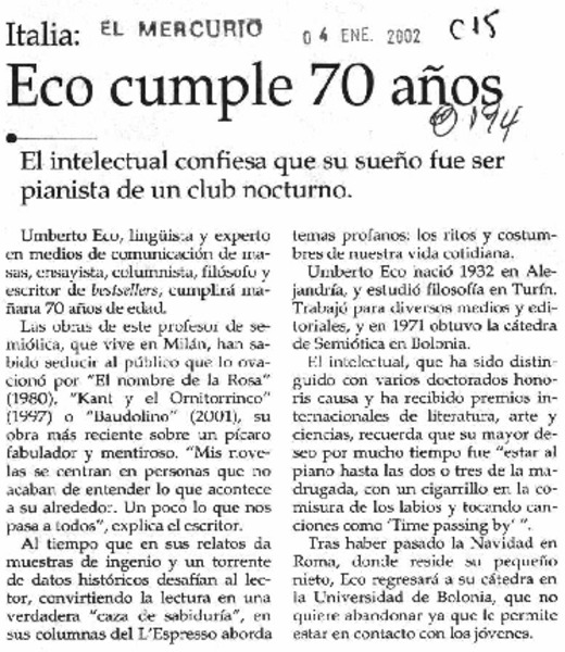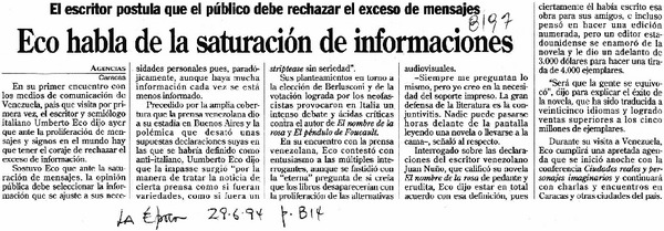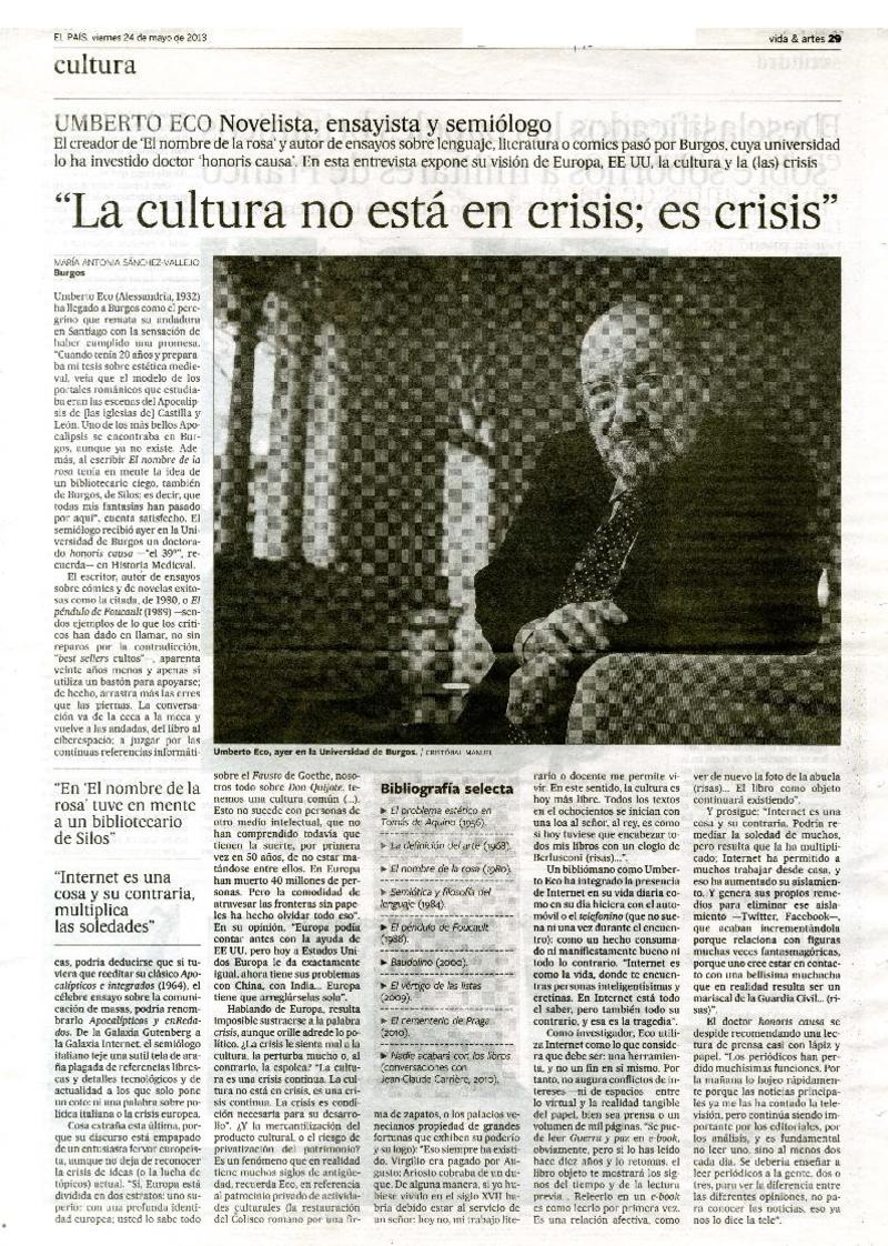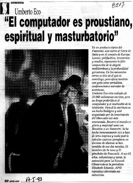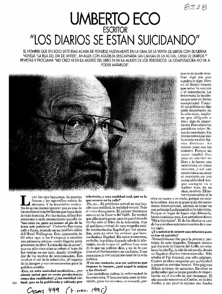 Umberto Eco escritor "los diarios se están suicidando" [artículo] Enrique Romero.